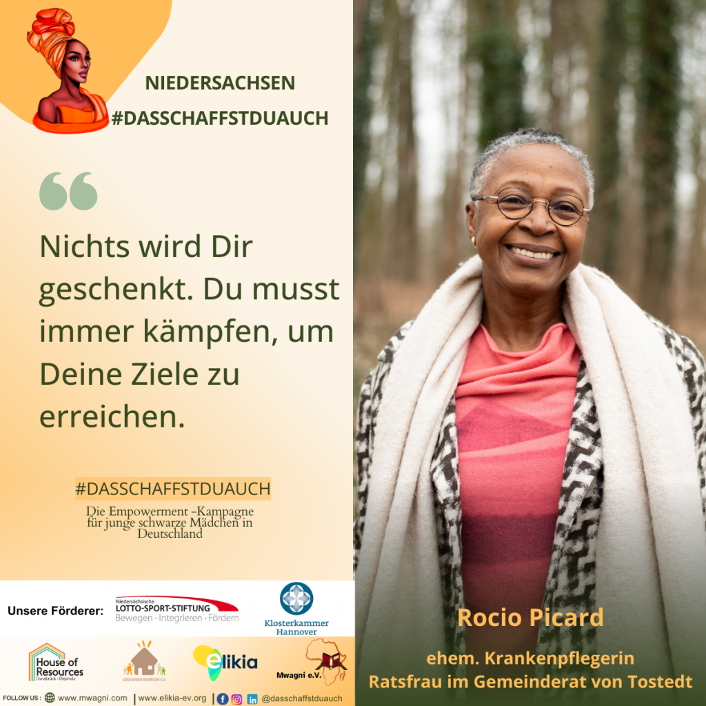 Mein Name ist Rocio Santacruz Gonzalon de Picard. Ich bin in Ecuador geboren und aufgewachsen und kam mit 19 Jahren als Kindermädchen nach Deutschland. Ich bin Rentnerin und seit 2015 ehrenamtlich als gewählte Ratsfrau im Gemeinderat von Tostedt. In meiner aktiven Berufszeit war ich Krankenpflegerin und habe viele Jahre als Altenpflegerin gearbeitet. Ich bin verwitwet; Mutter von drei Kindern und stolze Oma. Ein Schlüsselmoment in meinem Leben war die Entscheidung, in Deutschland zu bleiben, nachdem die Diplomatenfamilie, bei der ich als Kindermädchen gearbeitet hatte, das Land verlassen hat. Ich blieb, um hier in Deutschland eine Ausbildung als Krankenpflegerin zu absolvieren – wurde aber mit der brutalen Realität des Ausländerdaseins konfrontiert. Ich stand vor dem Nichts und musste um die Legalisierung meines Aufenthaltes kämpfen. Es waren sehr harte Zeiten, die mich geprägt haben, nicht nur, weil sie schwierig waren, sondern weil ich in dieser Zeit sehr viel über mich und die Menschen gelernt habe; ein Gewinn für meine soziale Intelligenz.